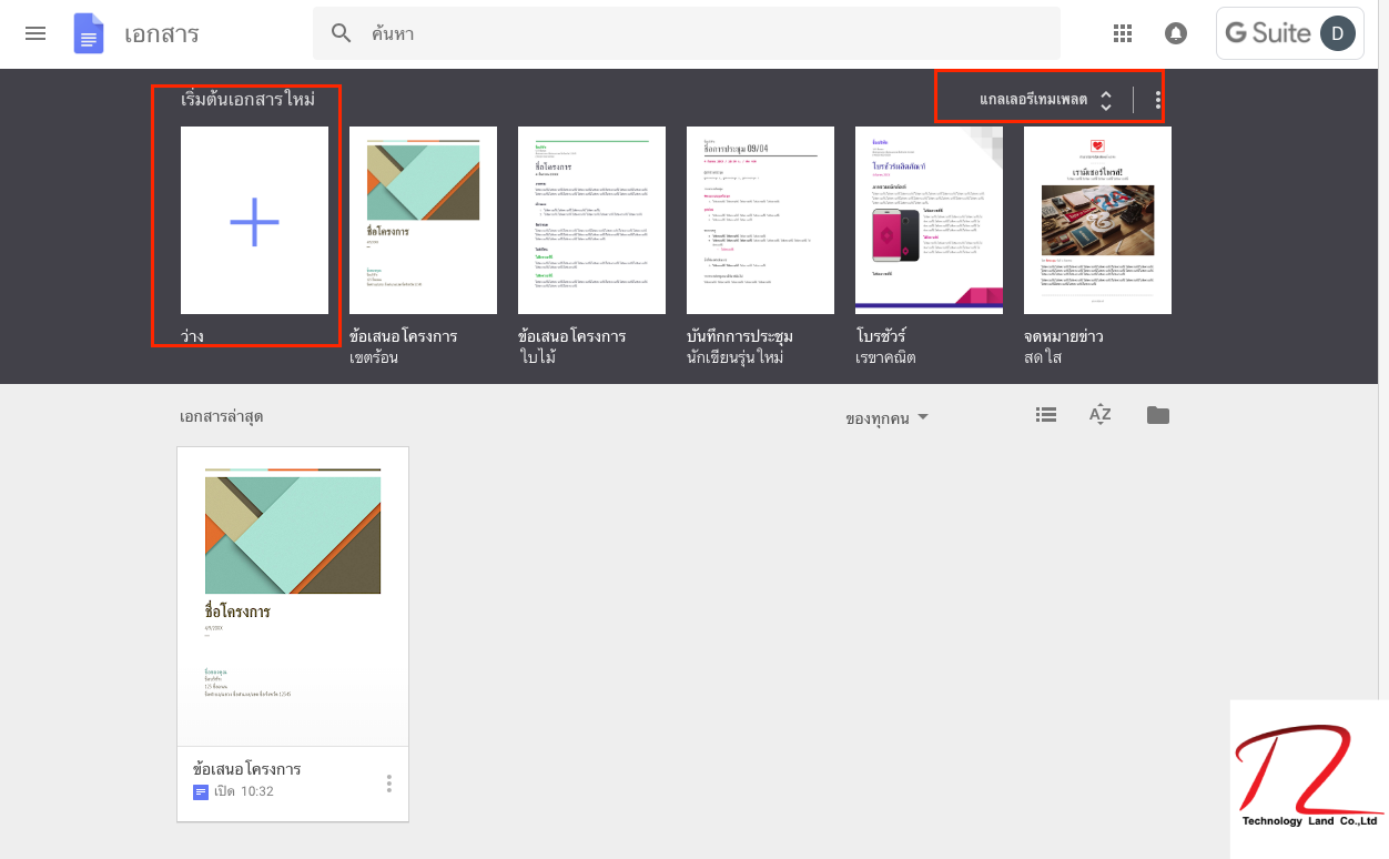 4,ผู้ใช้งานสามารถสร้างเอกสารใหม่หรือเลือก Template ที่ระบบมีให้อยู่แล้วได้
