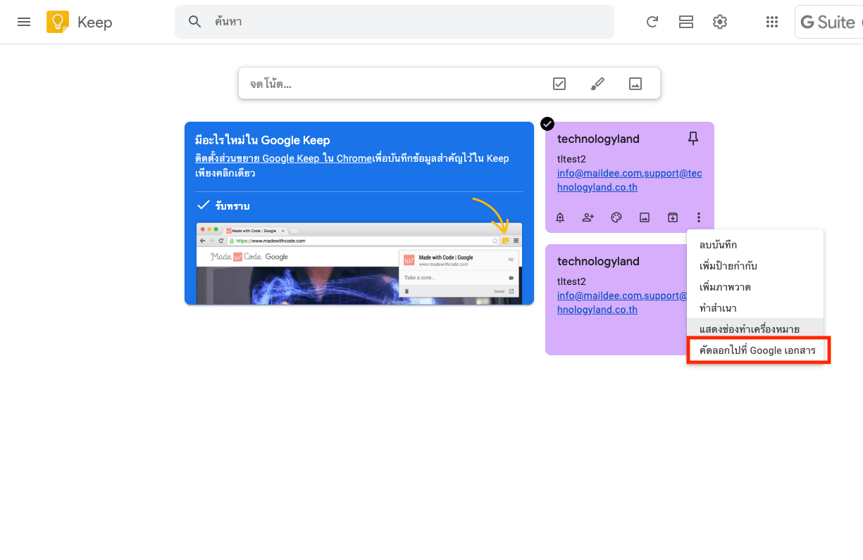 วิธีการแชร์ Keep ไปยัง Google Docs