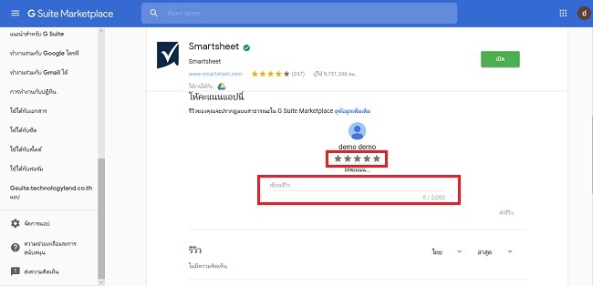 เพียงเท่านี้ก็เสร็จสิ้นการให้คะแนนหรือการรีวิว แอป Marketplace